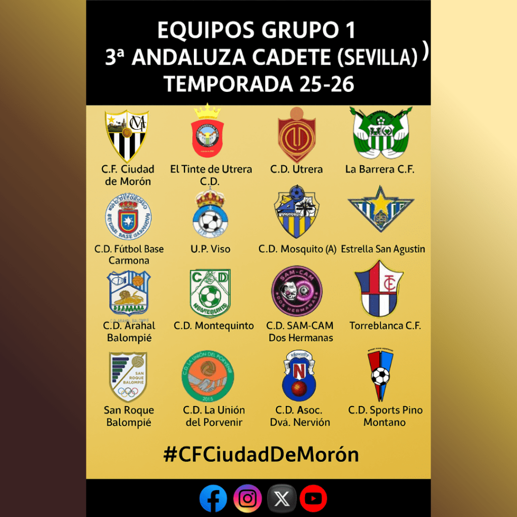 #CFCiudadDeMorón #Cadete25_26 #3ªAndaluza #FútbolBase #OrgulloCiudad #BlancoYNegro