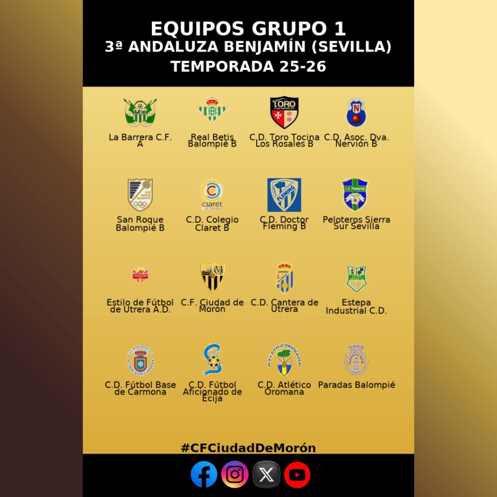 #CFCiudadDeMorón #Benjamines25_26 #3ªAndaluza #FútbolBase #OrgulloCiudad #BlancoYNegro