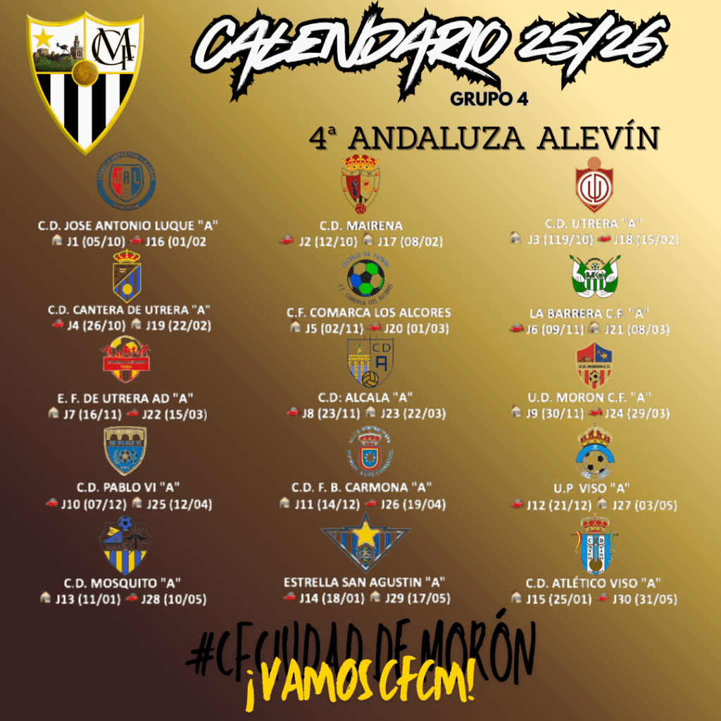 #CFCiudadDeMorón #AlevínB25_26 #4ªAndaluza #Calendario #FútbolBase #OrgulloCiudad #BlancoYNegro